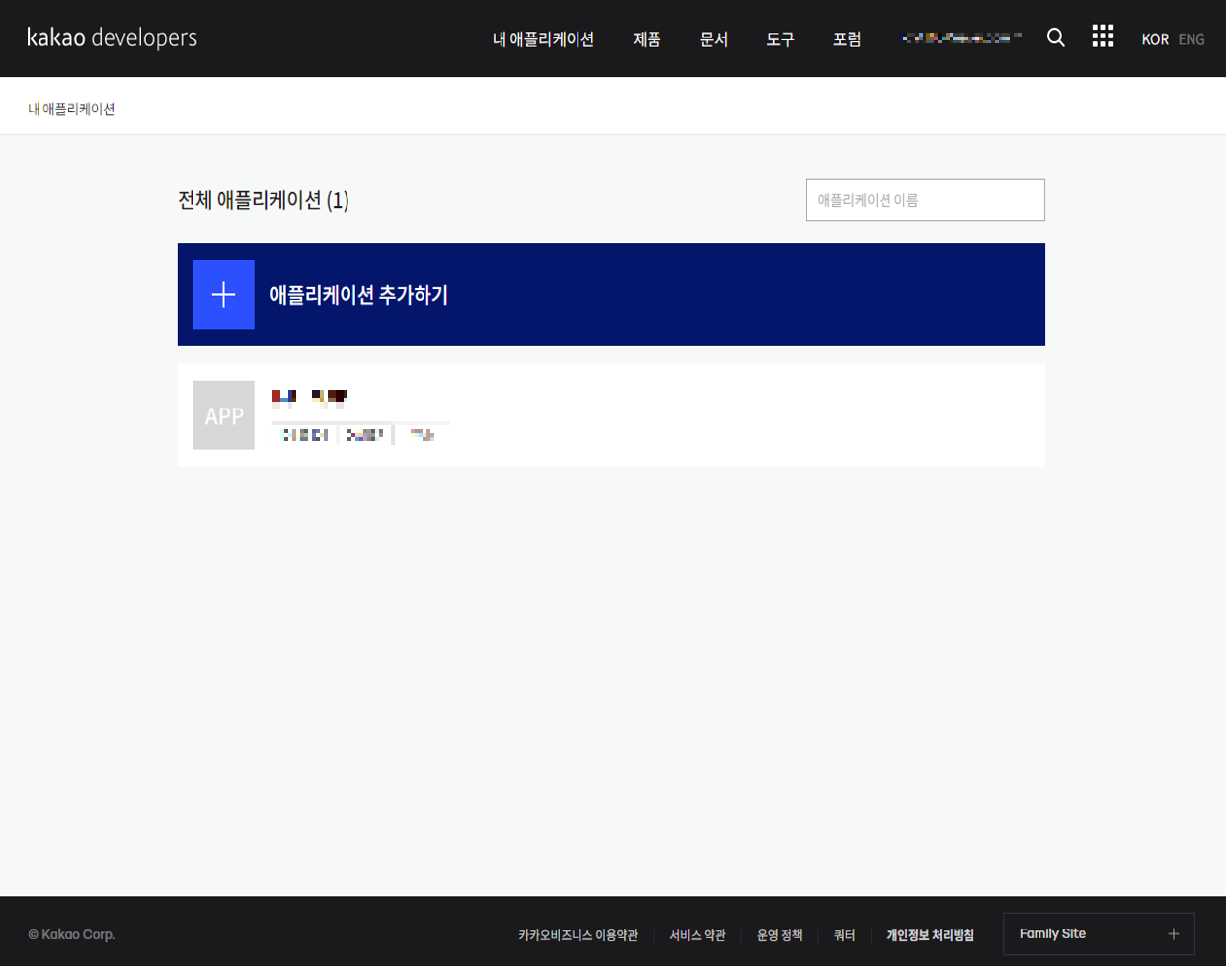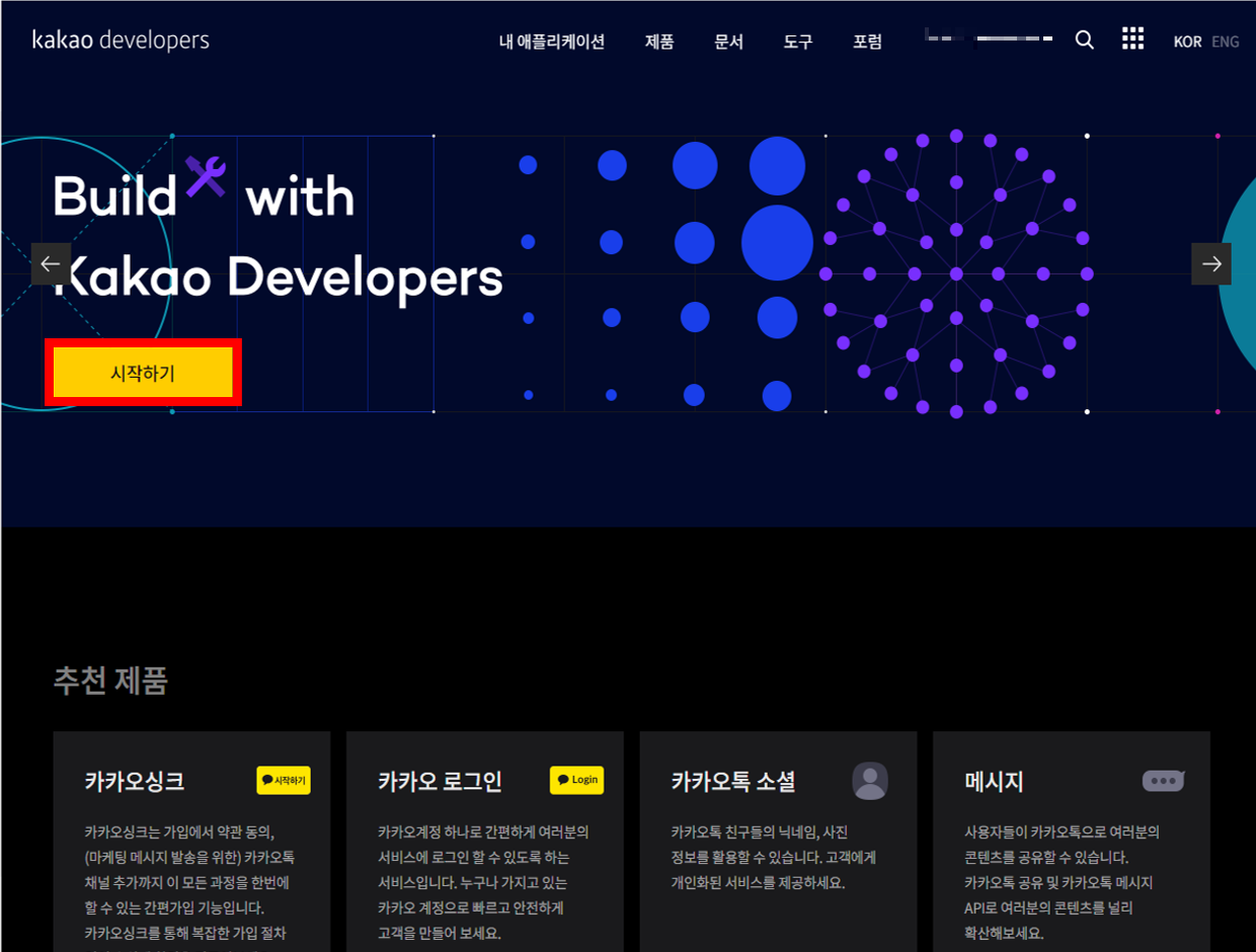 1. 카카오 개발자 사이트에 접속. (https://developers.kakao.com)