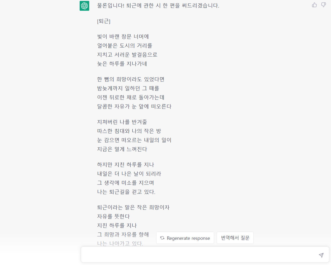 전에 AI가 시도 쓸 수 있다는 기사를 봐서 그랬는지 이런 질문을 해봤다.