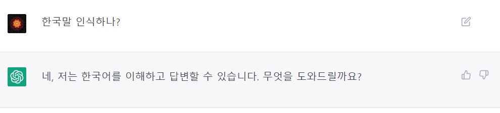 메시지 중 '한국어 인식 가능!' 이건 내가 처음으로 ChatGPT에게 물어본 질문이다.