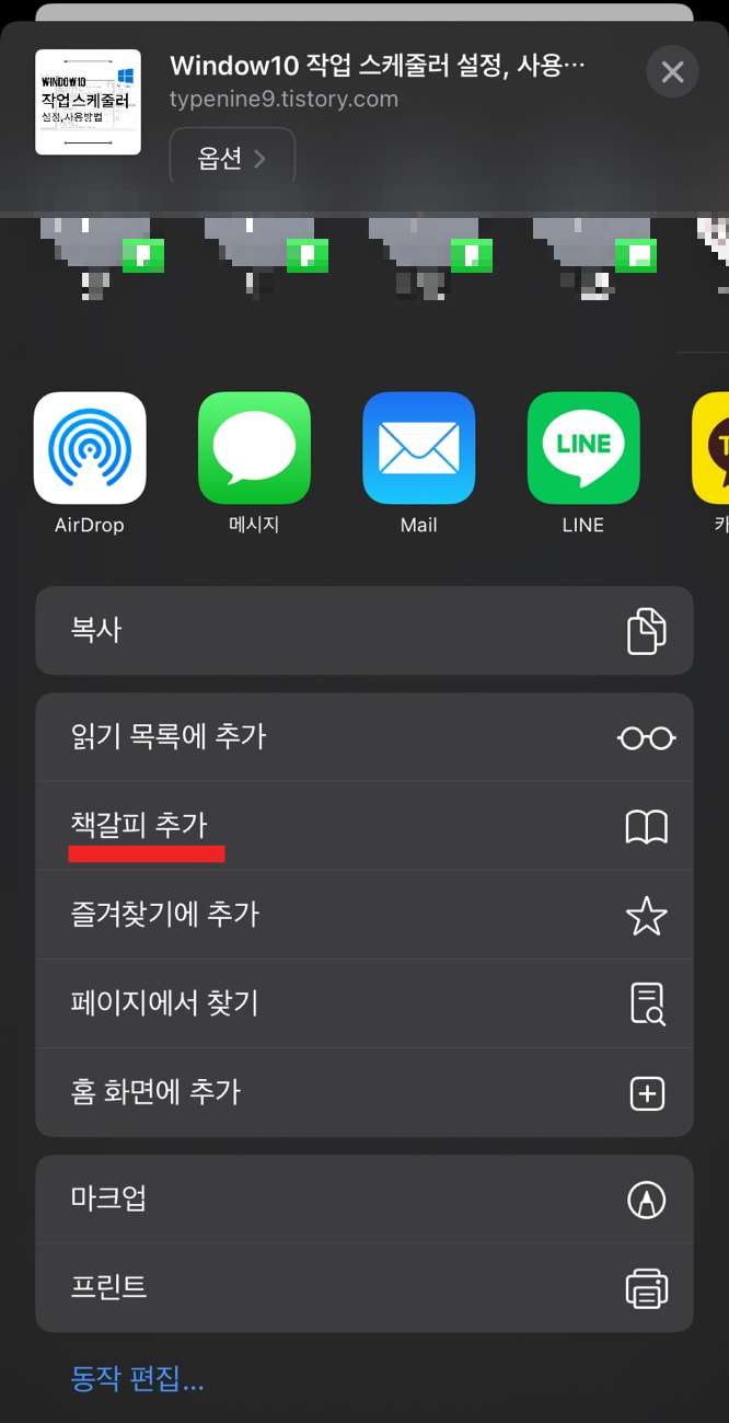 2. 책갈피 추가 후 책갈피 편집에 들어가 책갈피 이름과 주소 링크를 수정한다.