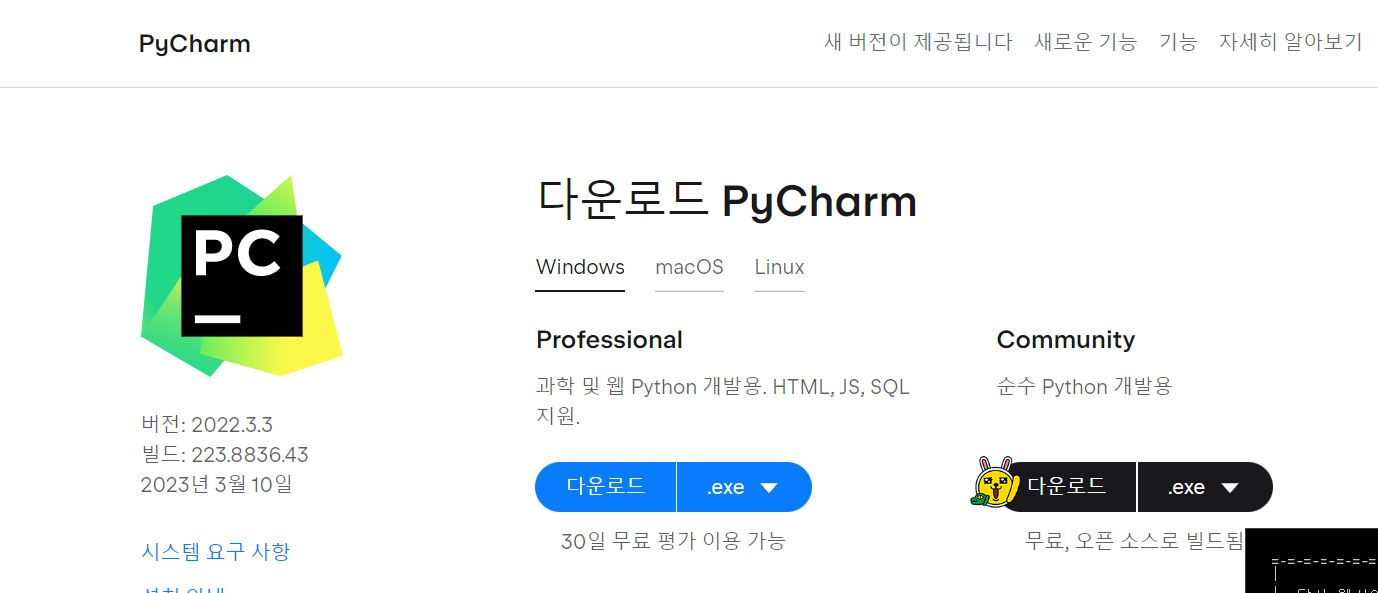 https://www.jetbrains.com/ko-kr/pycharm/download/#section=windows