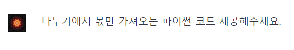 문제의 의미를 파악하고 코드를 짜려고 하다가 문득 챗GPT가 떠올랐다. 이걸로 예제 코드 받아서 문제 풀면 어떨까 싶었다. 바로 실행해봤다.
