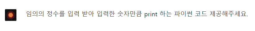 문제 이해를 잘못했나 싶었는데 문제 다시보니 정수 받을 때 문구 같은 게 없었는데 위의 코드엔 "정수를 입력하세요"가 들어있었다. 위의 입력시 문구를 지우고 다시 돌려보니 그제서야 통과 했다. 사실 위의 질문을 세번 하지 않고도 한 번에 섞어서 하면 내가 짠 코드처럼 나오지 않았을까 싶었다. 그래도 이 문제는 나의 문제해결력 향상을 위한 과정이니 챗GPT로 그냥 답을 얻기 보다는 최대한 '도구'로 사용하려고 해봤다.