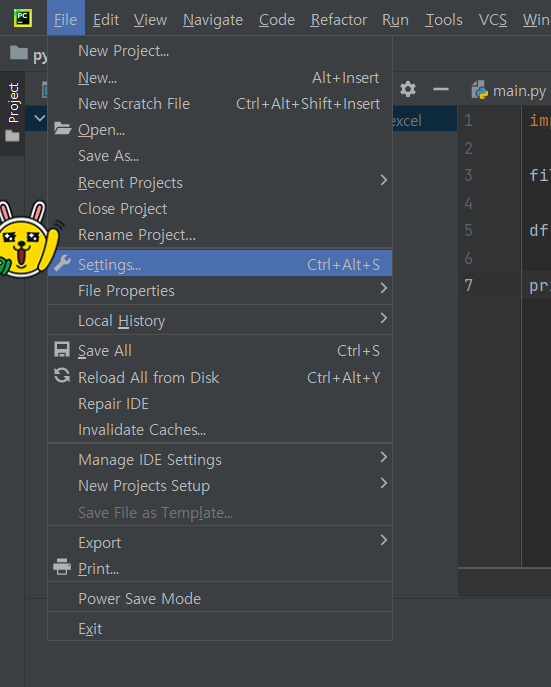 File - Settings에 들어간다.