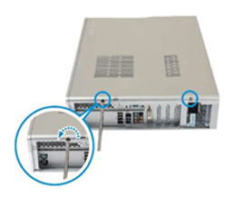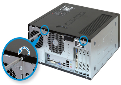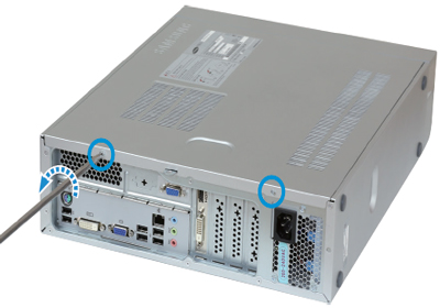 - 5. 컴퓨터의 뒷면의 나사를 오른쪽으로 돌려서 고정시키세요.