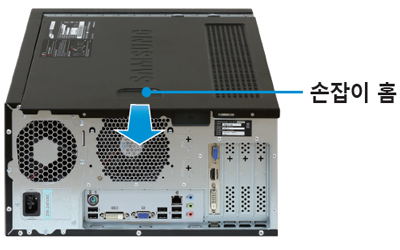 - 2. 손잡이 홈을 이용하여 덮개를 뒤쪽으로 잡아 당기세요.