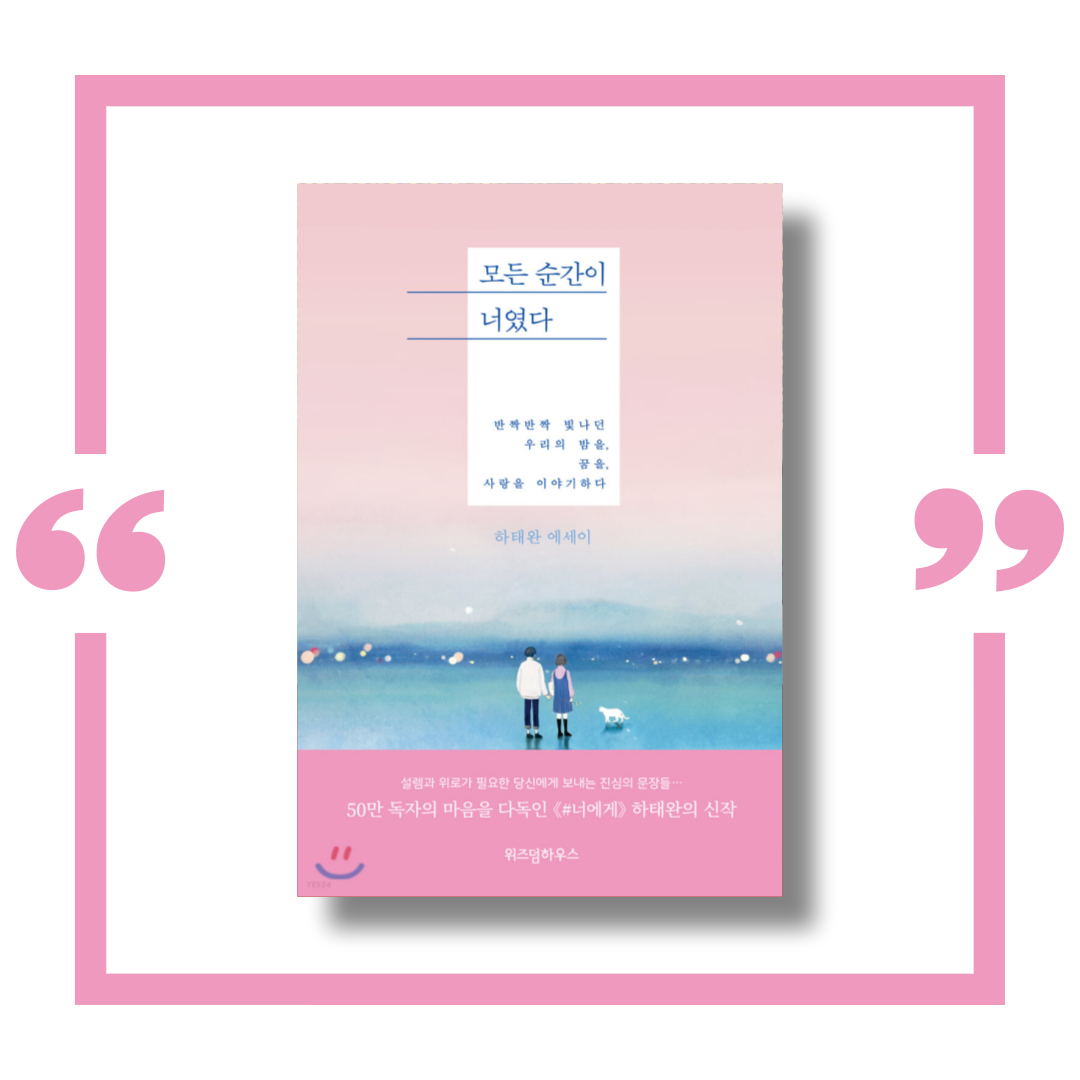 하태완의 『모든 순간이 너였다』는 일상의 고군분투와 자기 수용의 모색을 말하는 가슴 아프고 위로가 되는 책이다. 자신의 여정에서 위안과 공감을 찾는 사람이라면 반드시 읽어야 할 에세이라고 자신 있게 말할 수 있다. 하태완 작가의 글은 온화하고 연민이 있어 자신의 감정과 경험으로 힘들어하는 독자들에게 위로와 안도감을 준다. 이 책은은 우리가 고군분투하는 것이 혼자가 아니며 더 밝은 미래에 대한 희망이 항상 있음을 상기시켜 준다.