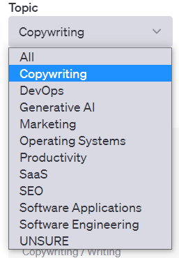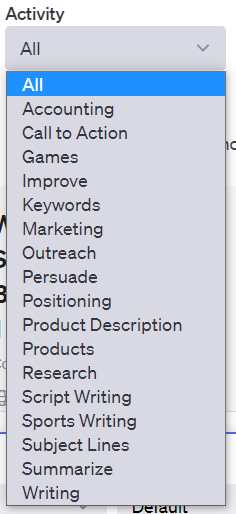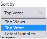 Topic, Activity, Sort by의 세 개의 콤보박스와 Search는 프롬프트를 조회하는 조건들이다.