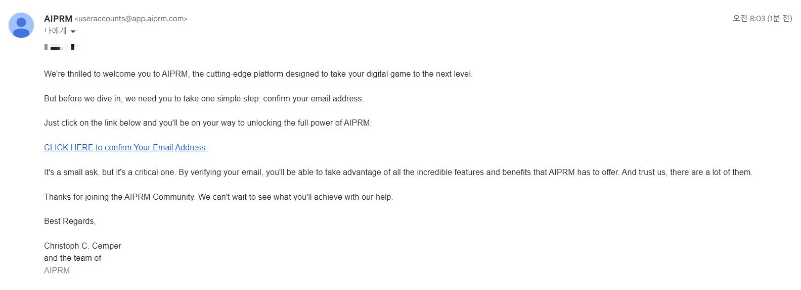 설정한 이메일 계정에 확인 메일을 보냈다고 한다.