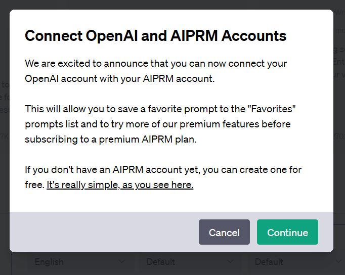 AIPRM을 OpenAI와 연결하는 작업하는 동의 팝업이 나온다.