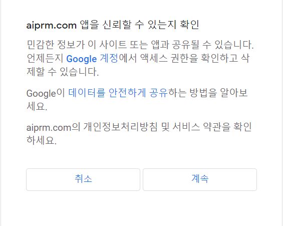 구글 계정과 AIPRM 연결 하는 동의 창이 하나 나온다.