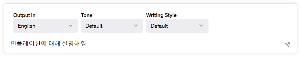 상세한 요청 내용이 없었기에 인플레이션의 용어 정의를 일목요연하게 풀어 놓은 것을 볼 수 있다. 기존 ChatGPT에서 볼 수 있는 답변이다.
